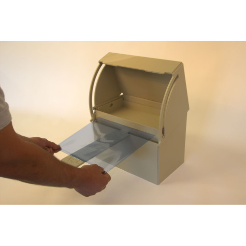 This dispenser has been designed to provide light safe storage and trouble free dispensing of dry film in a production environment. It is quick and easy to load, has a convenient storage facility for associated tools and incorporates an effective film measurement gauge.