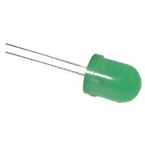 A Green high intensity 10mm diameter LED in a diffused package.Ideal for use in alarms etc.
