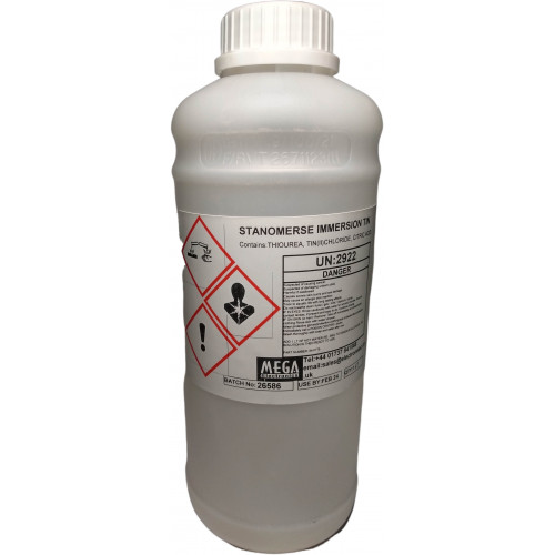 A unique stable immerse tin powder that although it dissolves in water at 50 deg C, it actually plates at room temperature. The tin molecules deposited at room temperature are very small making the coating fine, hard and homogenous. Working solution has six months shelf life, unmixed powder has unlimited shelf life.