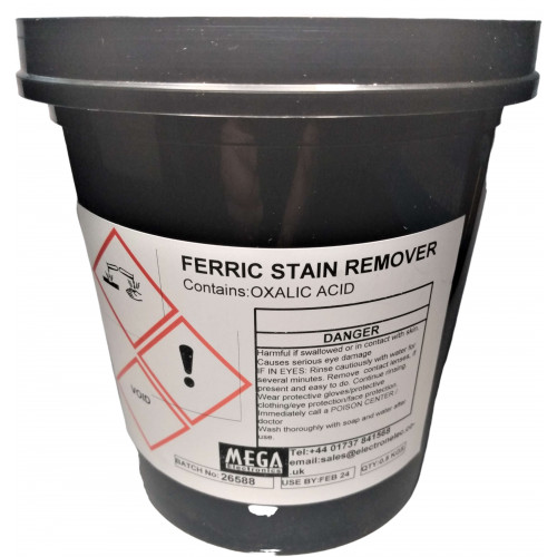 A unique powder which may be utilised in a variety of methods for the removal of Ferric Chloride stains from clothing ,PCB tanks, work benches and other affected areas. Concentration required will depend on the nature of the stain requiring removal, but typical concentration in solution is between 100g/200ml and 100g/100ml of water. The powder may also be used directly on badly affected areas. Supplied in a 1kg pack . COSHH data sheet supplied.