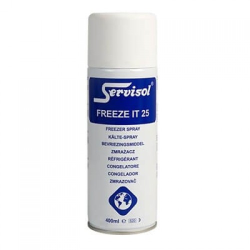To assist in locating faults in transistors,resistors, condensers etc.A chemical preparation that instantly reduces the temperature of components to approximately -60 deg C in about 2 seconds,saving valuable time tracing intermittent faults.It can also be used for cooling thermostats in electric irons, blankets, etc.In order to obtain "cold reading" immediately after switch off. Nett contents 400ml. HCFC free.