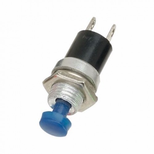 A low cost, miniature momentary action blue push to make switch for panel mounting. Supplied with fixing nut and washer. Ideal for non industrial use