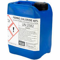 Ferric Chloride is used to etch a PCB and should be used in a heated bubble etch tank. The ideal temperature is between 35ºC and 55ºC with an optimum temperature of 45ºC.